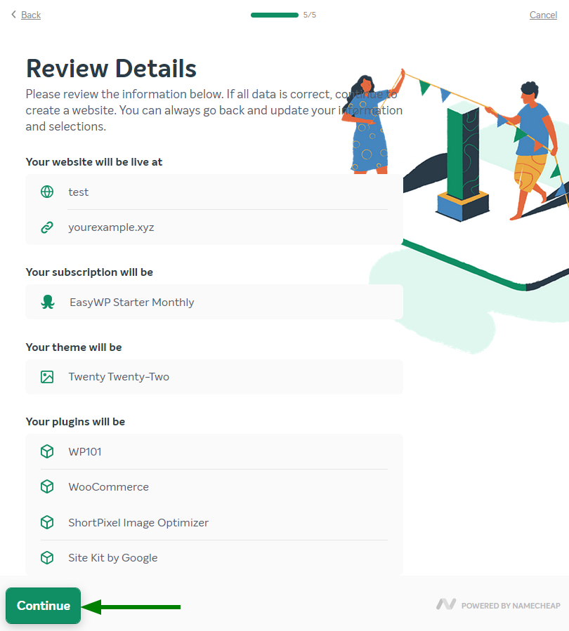 Vous avez l'option d'utiliser un domaine temporaire fourni par EasyWP ou choisir votre nom de domaine.
