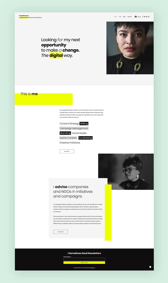 Ces sites personnels sont similaires aux portfolios mais contiennent généralement moins d'éléments visuels, car l'objectif n'est pas nécessairement d'afficher les travaux antérieurs.